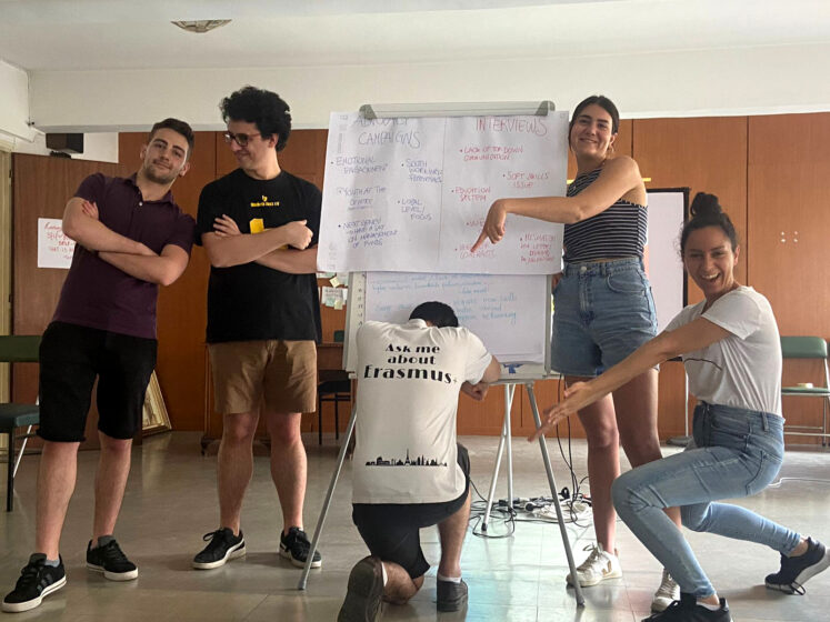 Després dels primers dies d’autoexploració i coneixement, vam començar a aprofundir en el nostre propòsit de ser a Atenes: comprendre millor la situació actual de la desocupació juvenil a Europa i dissenyar campanyes per lluitar contra les causes fonamentals dins de cada país. Treballar amb la delegació catalana va ser un plaer absolut, ja que tots van aportar el seu propi conjunt únic d’habilitats: l’Andrés amb el seu arsenal inesgotable d’idees, l’Elena amb la seva experiència de treball juvenil a Catalunya, la Patrícia amb el bon ull per als detalls i una perspectiva sense igual i a mi, un “estudiant de negocis” intentant estructurar aquests brillants inputs i formular-los en un pla d’acció. Eventualment, vam dissenyar un marc que gira al voltant de la necessitat de poder accedir a recursos per a la millora de la salut mental de les persones joves, per tal d’ajudar-los a superar les pors i els obstacles que s’interposen entre ells i les seves carreres professionals.